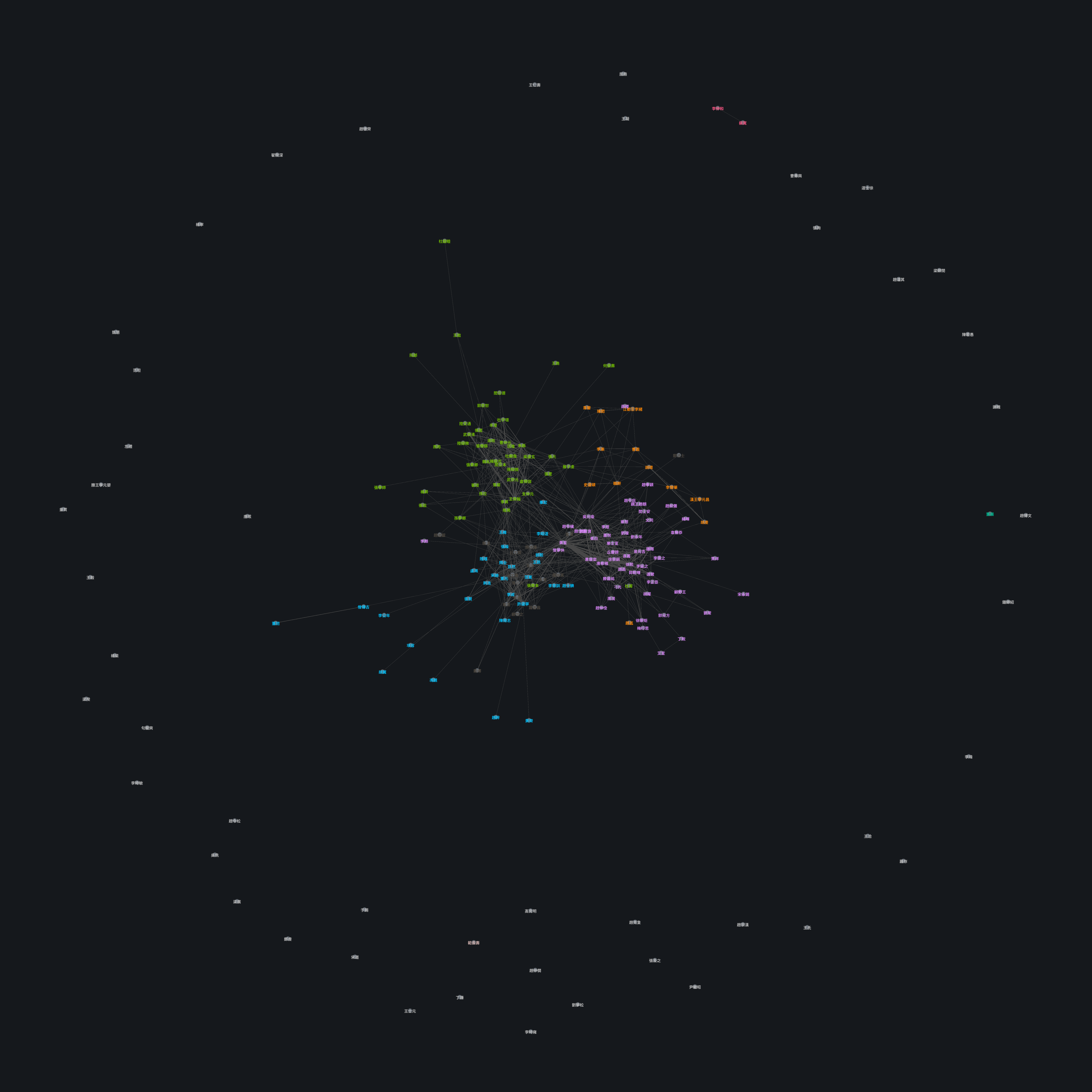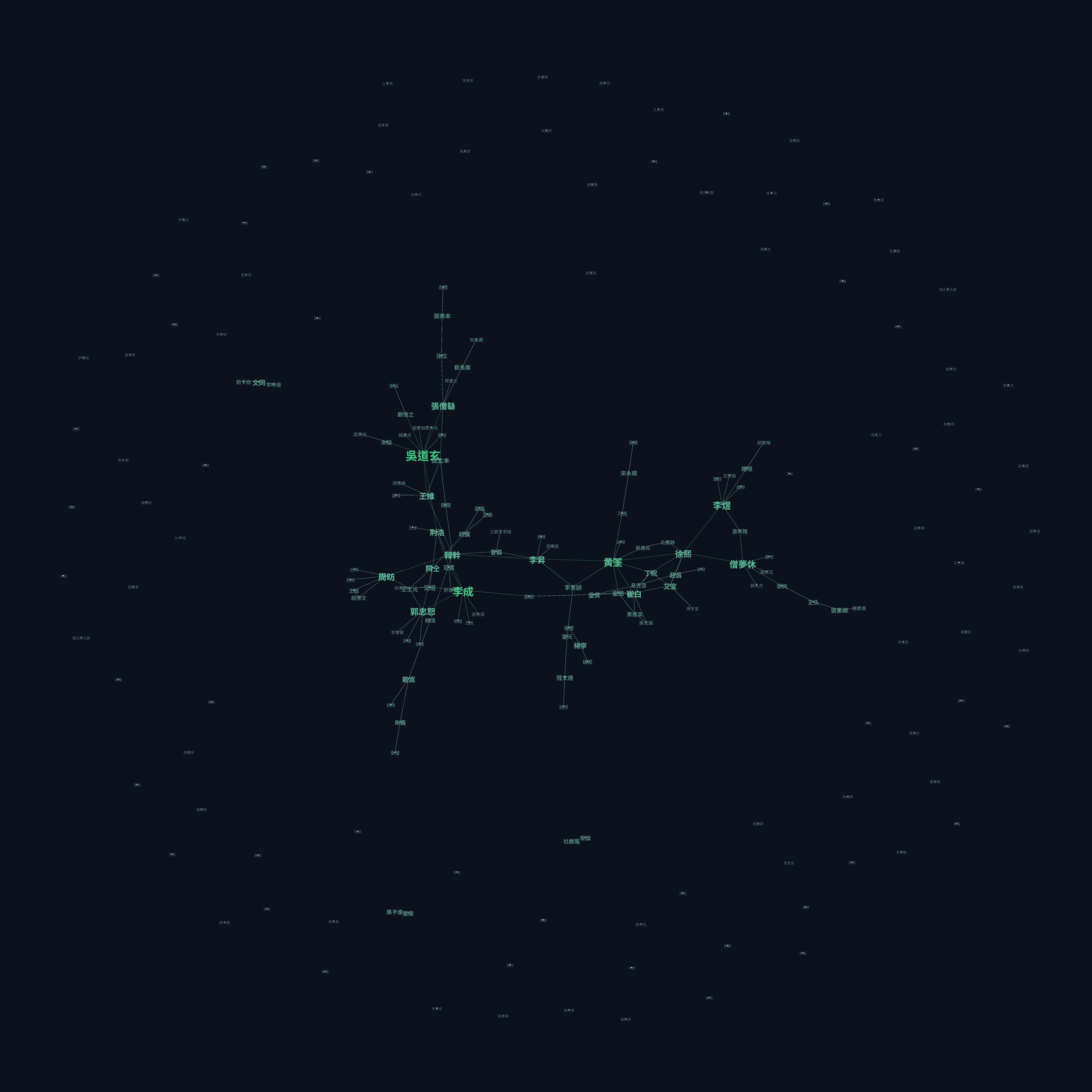 The node sizes also tell us that in the catalog, 吴道玄 is considered (implicitly via mentions in other entries) the most influential artist, which is interesting considering in contemporary times other artists may be considered more influential.